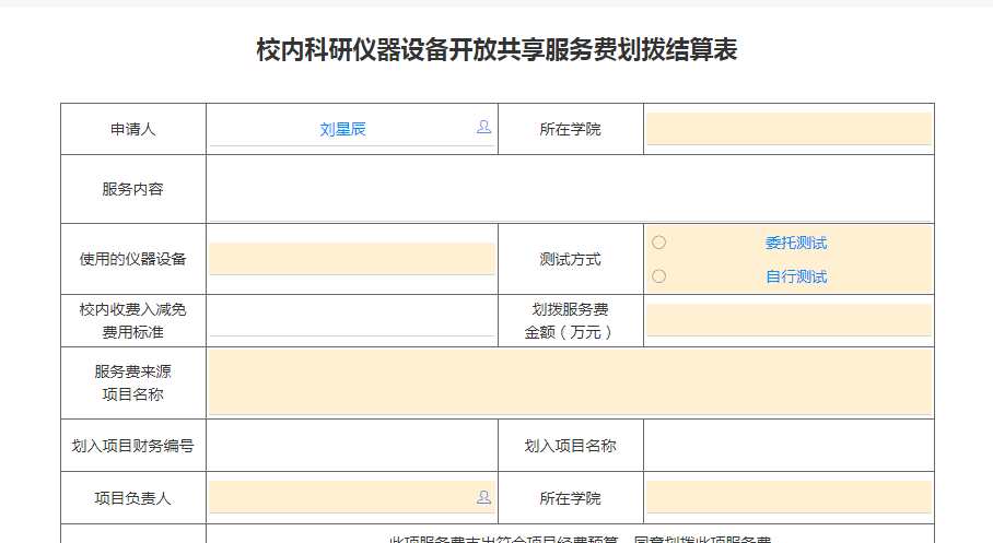 4、选择“项目负责人”,项目负责人审批后,“仪器设备主管人”选择物电学院“刘星辰”。