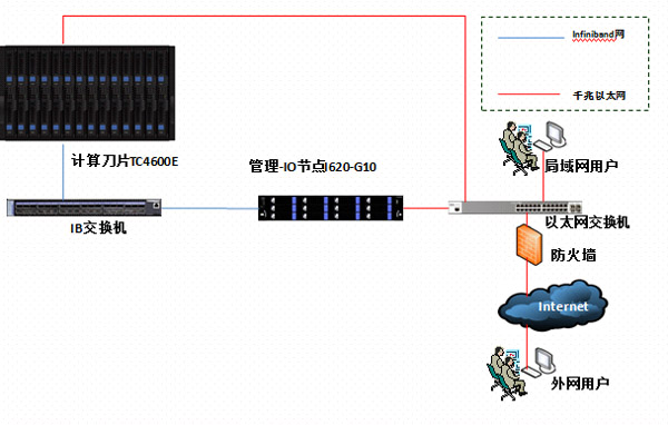 性能参数:该集群共有一箱TC4600E 5片刀片服务器作为计算节点(共120核心,存储空间9TB);1台I620-G10作为管理和IO节点(62节点)。系统配置1套56GB FDR Infiniband网络。Suse 64位企业版Linux操作系统,性能卓越,安全可靠;编译环境:提供GNU C/C++编译器、GNU Fortran77/90/95等各种编译器、Java、Python、PERL开发环境,满足多种程序开发需求。